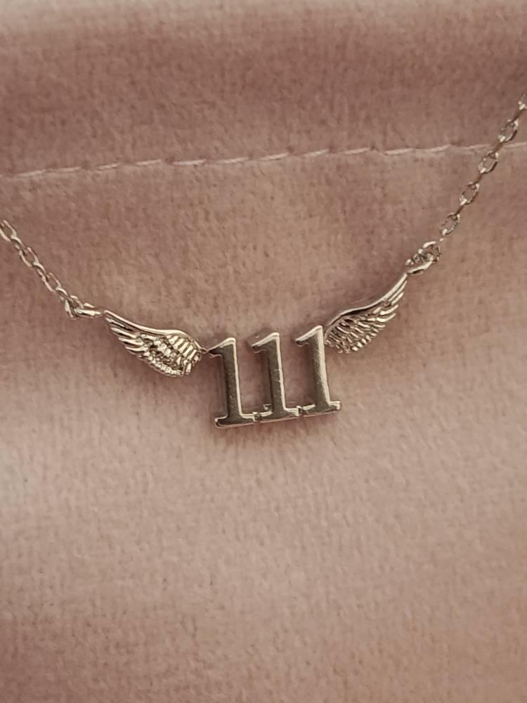 Winged 111 Angel Number Necklace. The pendant features the sacred number 111, believed to be a symbol of spiritual awakening, alignment, and the presence of angels in your life.