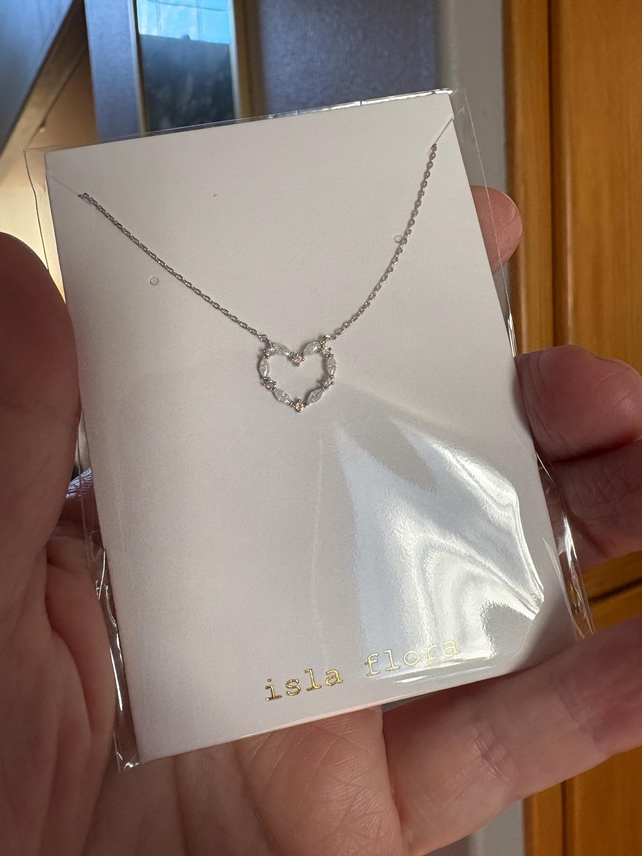Dainty Dusty Crystal gems detailing this Beautiful Heart Necklace. This exquisite piece, has tiny moonlit opal shades in single cubic in between the oval cubic shapes. View the whole store: islaflora.etsy.com