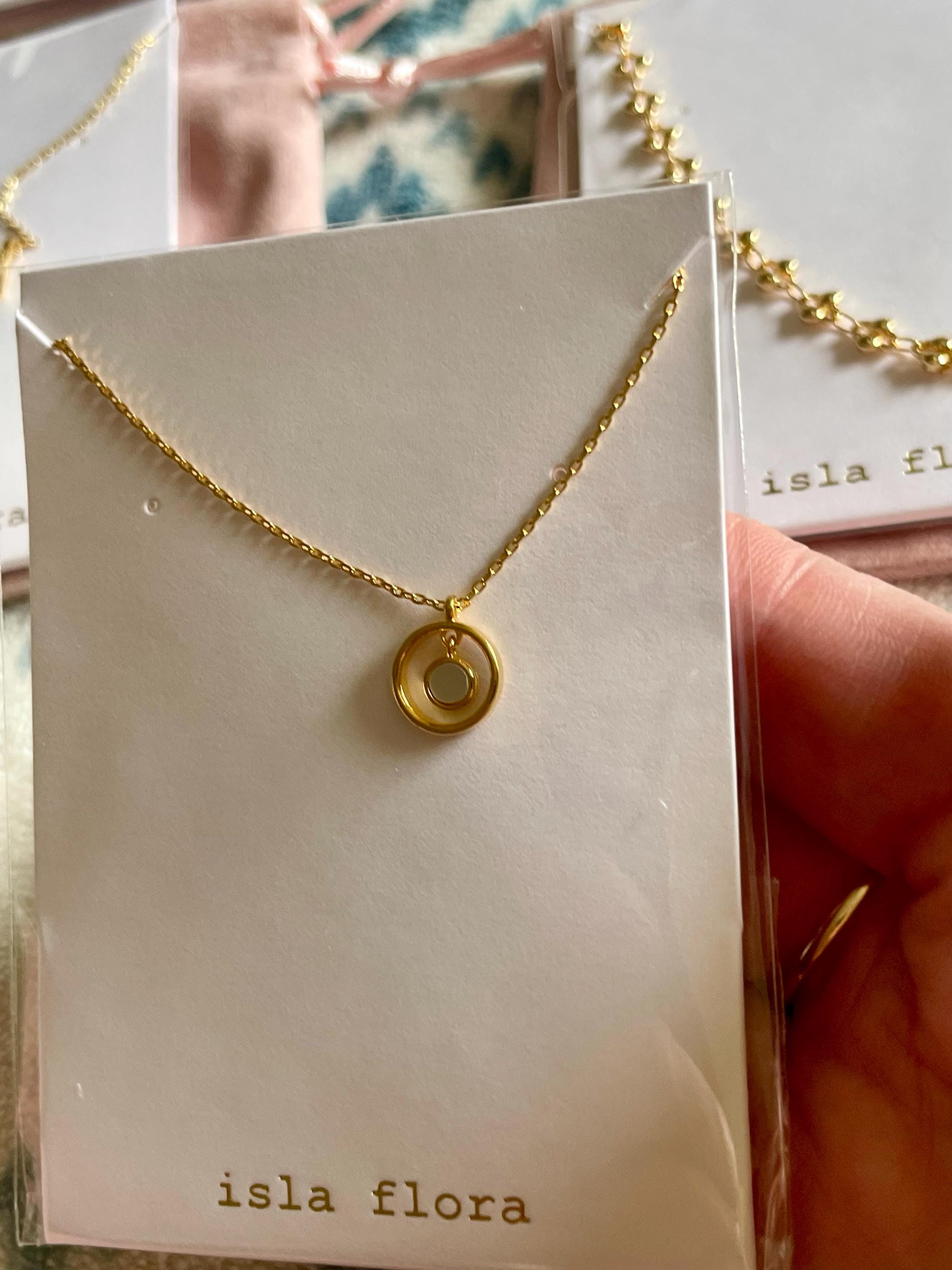 This is a sweet, delicate necklace that adds quiet charm to any outfit and occasion. I love the delicate movement the inner circle makes whenever I move!