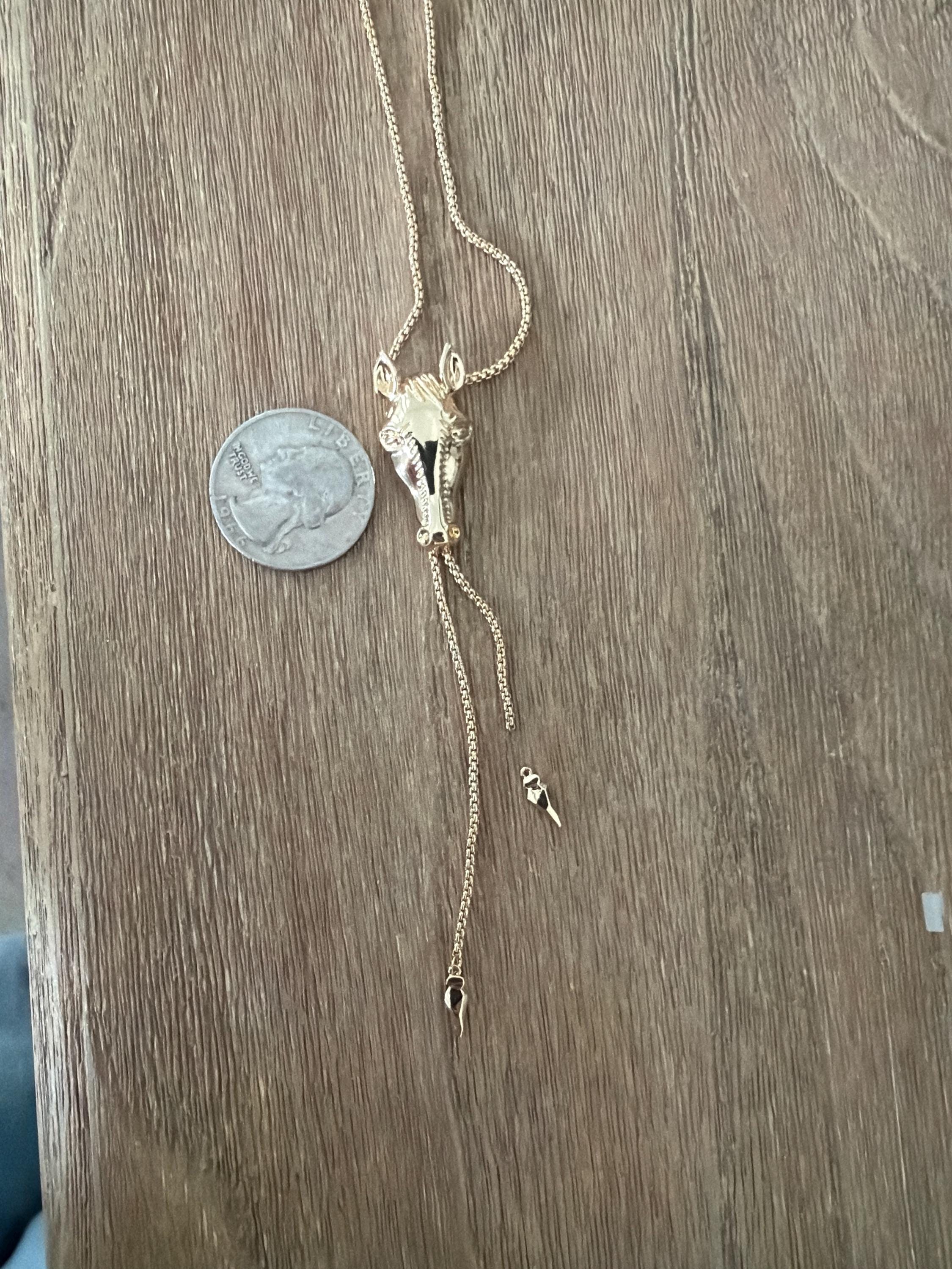 Adjustable Brass Horse Head Pendant Bolo Chain Necklace (Bolo trim is NOT attached to Horse head)